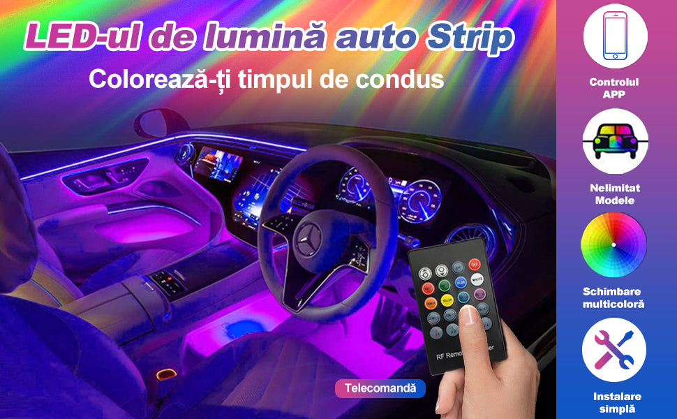 - 🎵 Sincronizare cu Muzica: Activează modul de sincronizare cu muzica și lasă luminile să danseze pe ritmurile preferate. Perfect pentru a transforma mașina într-o petrecere mobilă!